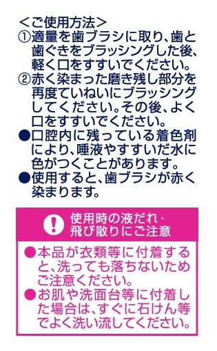 磨き残しチェックと歯磨きがこれ1本で!歯垢ゼロを目指すハミガキです。歯垢染色剤※1が歯垢を赤く染めることで、磨き残しを見える化!赤く染まった部分をそのままブラッシングするだけで、歯磨きまで完了。ポリリン酸Na※2とAg※3を配合。歯石の沈着や口臭を防ぎ、白い歯へ導きます※4。余分な泡立ちを抑えた低発泡設計で磨きやすく、香味は爽やかなクリアミントタイプ。国産歯ブラシ付き。